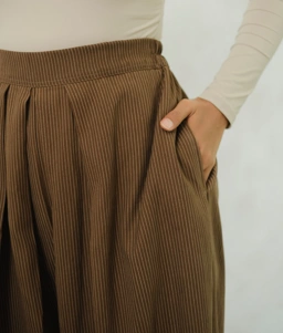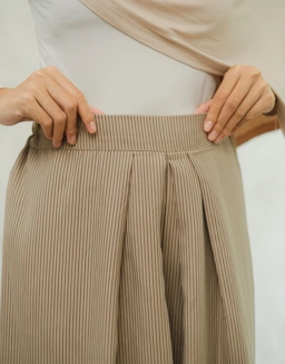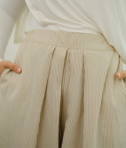 Detail lipit halus di bagian depan menciptakan jatuh kain yang elegan dengan potongan wide leg yang longgar, memberikan ruang gerak yang lega. Tekstur kain yang lembut juga membuatnya mudah dipadukan dengan berbagai atasan, dari tunik hingga blouse favoritmu. Seraya Kulot cocok digunakan untuk daily wear, kerja, hangout, hingga acara semi-formal, menjadikannya pilihan versatile untuk melengkapi wardrobe kamu.