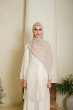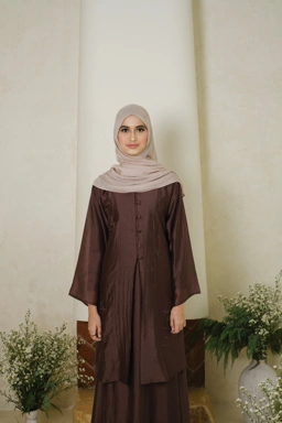 Terbuat dari bahan Glasse yang dikenal lembut dan ringan, tunik ini memiliki karakter sheer dengan kilau tipis yang memberi kesan mewah secara natural. Teksturnya terasa halus dan nyaman di kulit, menghadirkan tampilan yang flowy sekaligus terlihat rapi dan berkelas saat dikenakan sepanjang hari.
